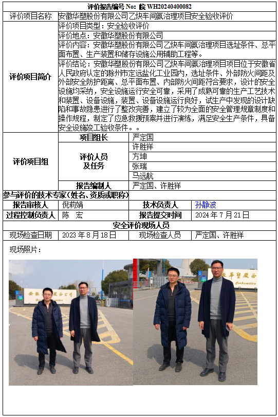安徽華塑股份有限公司乙炔車(chē)間氨治理項(xiàng)目安全驗(yàn)收評(píng)價(jià)