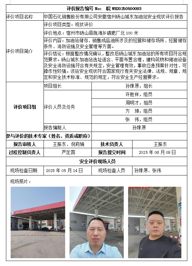 中國石化銷售股份有限公司安徽宿州碭山城東加油站安全現(xiàn)狀評價報告