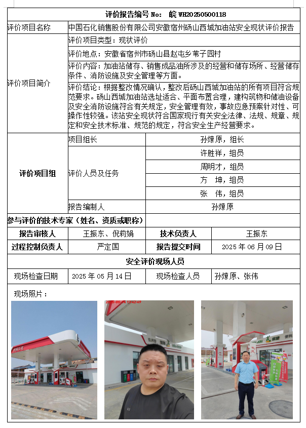 中國石化銷售股份有限公司安徽宿州碭山西城加油站安全現(xiàn)狀評價報告