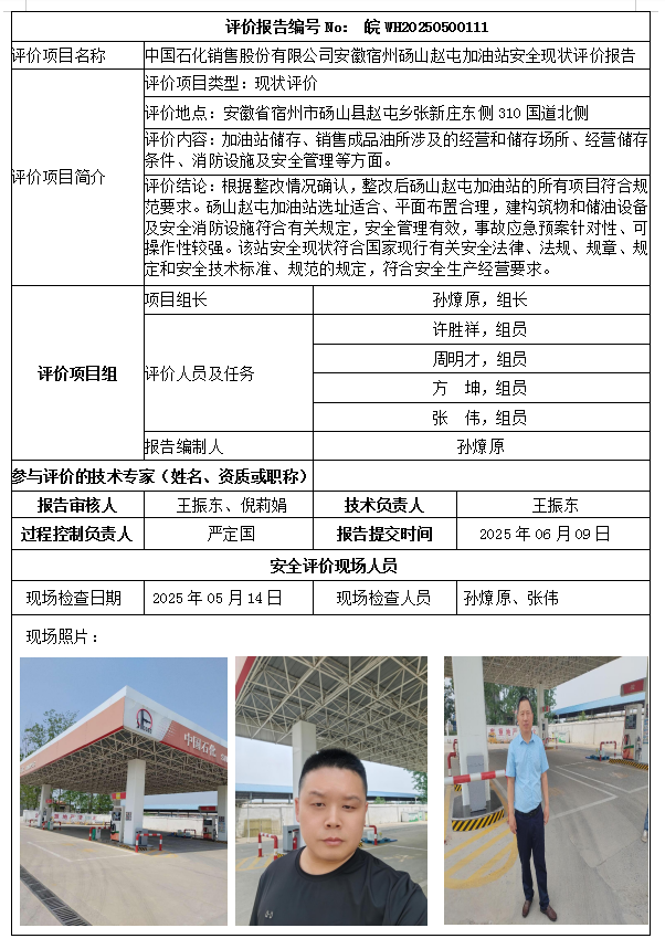 中國(guó)石化銷售股份有限公司安徽宿州碭山趙屯加油站安全現(xiàn)狀評(píng)價(jià)報(bào)告
