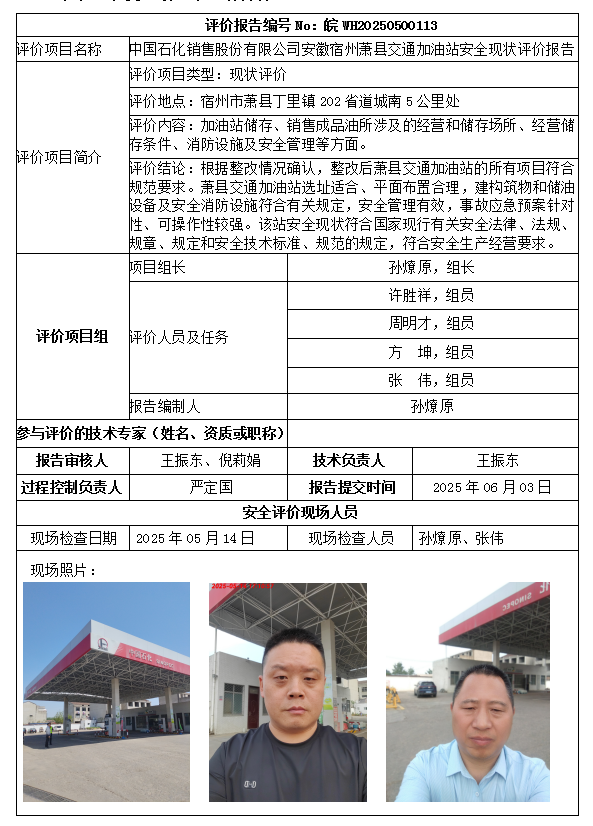 中國石化銷售股份有限公司安徽宿州蕭縣交通加油站安全現(xiàn)狀評價(jià)報(bào)告