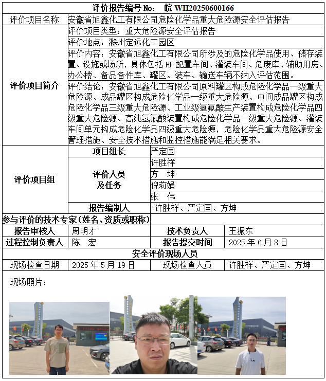 安徽省旭鑫化工有限公司危險化學(xué)品重大危險源安全評估報告