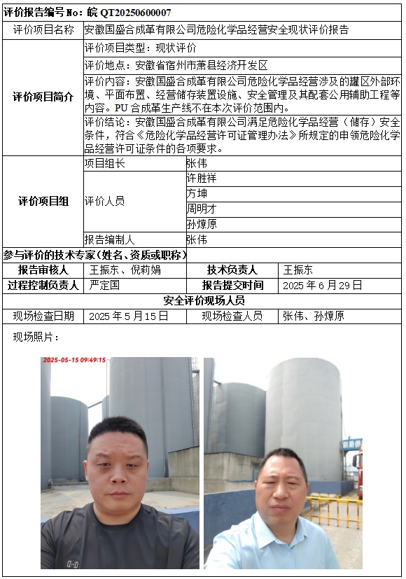 安徽國盛合成革有限公司危險化學品經(jīng)營安全現(xiàn)狀評價報告