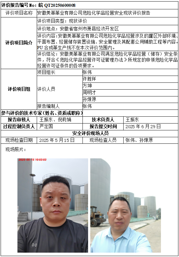 安徽美革革業(yè)有限公司危險(xiǎn)化學(xué)品經(jīng)營安全現(xiàn)狀評(píng)價(jià)報(bào)告