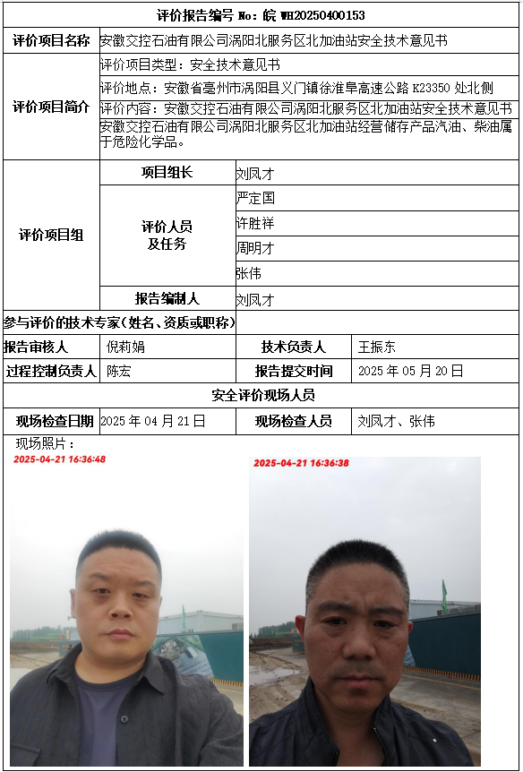 安徽交控石油有限公司渦陽北服務(wù)區(qū)北加油站安全技術(shù)意見書