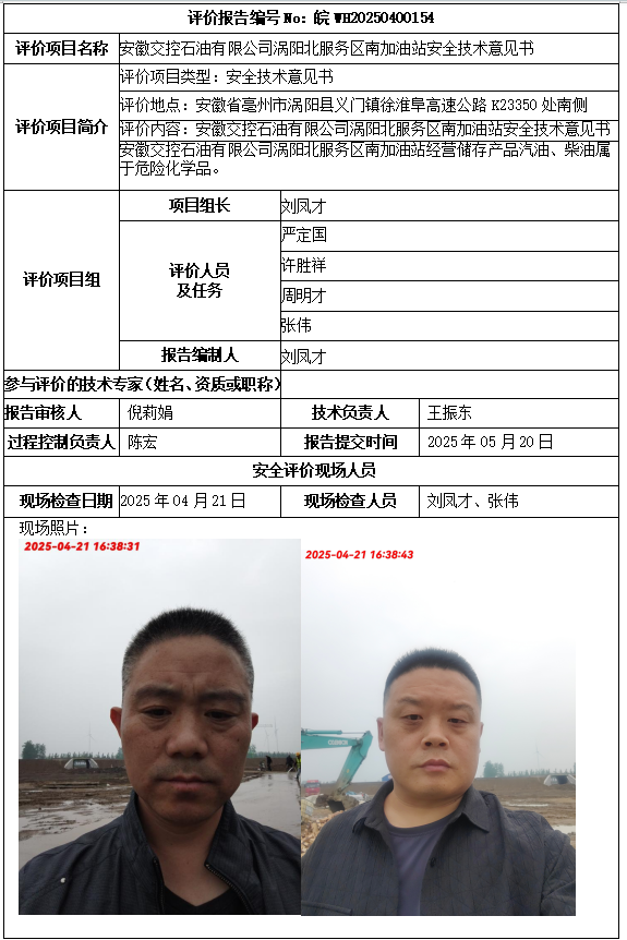 安徽交控石油有限公司渦陽北服務(wù)區(qū)南加油站安全技術(shù)意見書