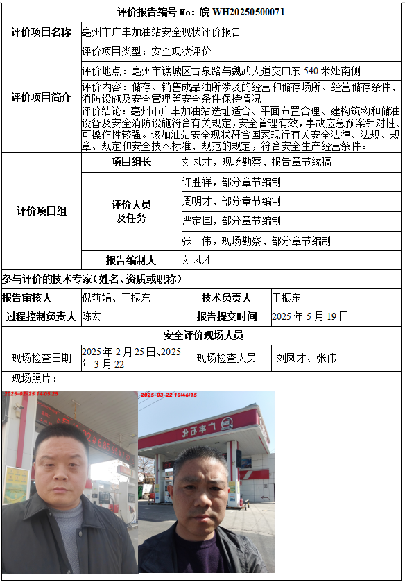 亳州市廣豐加油站安全現(xiàn)狀評(píng)價(jià)報(bào)告