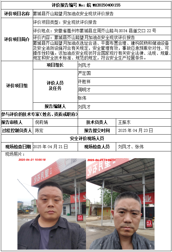 蒙城縣齊山路望月加油點(diǎn)安全現(xiàn)狀評價(jià)報(bào)告