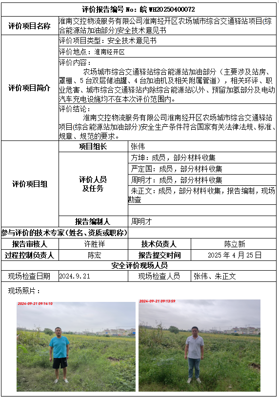淮南交控物流服務(wù)有限公司淮南經(jīng)開區(qū)農(nóng)場(chǎng)城市綜合交通驛站項(xiàng)目(綜合能源站加油部分)安全技術(shù)意見書