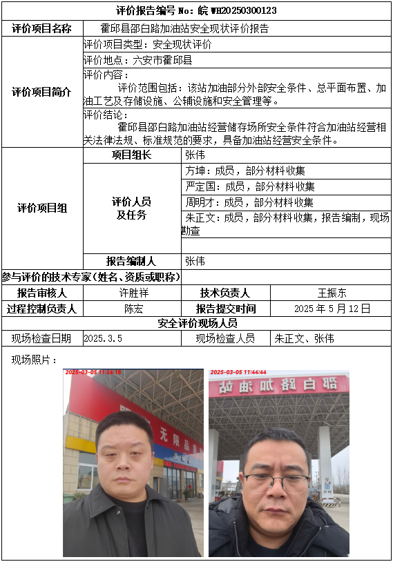 霍邱縣邵白路加油站安全現(xiàn)狀評(píng)價(jià)報(bào)告
