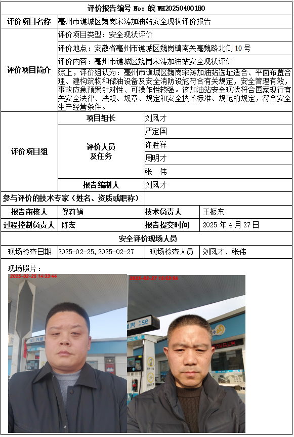 亳州市譙城區(qū)魏崗宋濤加油站安全現(xiàn)狀評(píng)價(jià)報(bào)告