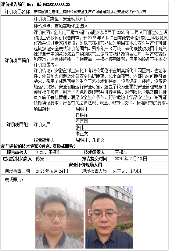 安徽宣城金宏化工有限公司安全生產(chǎn)許可證延期換證安全現(xiàn)狀評價(jià)報(bào)告