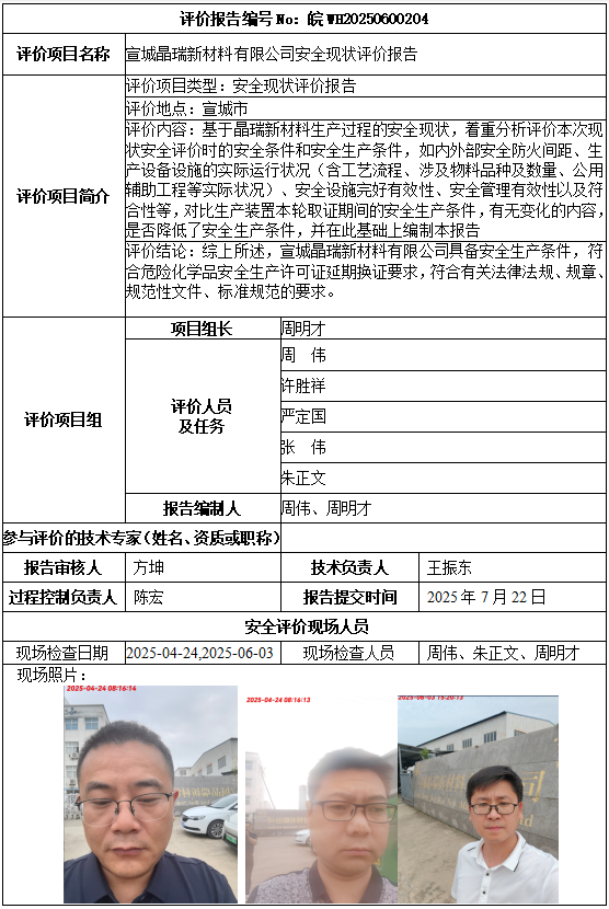 宣城晶瑞新材料有限公司安全現(xiàn)狀評(píng)價(jià)報(bào)告