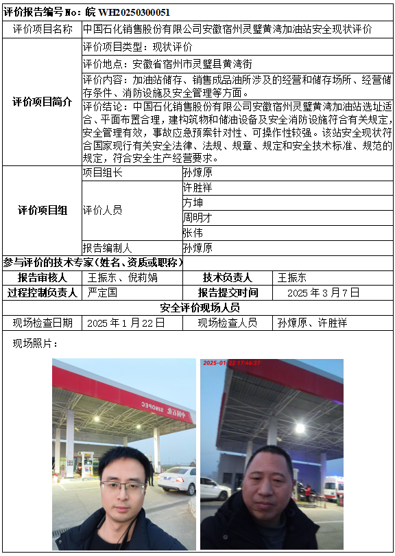 中國石化銷售股份有限公司安徽宿州靈璧黃灣加油站安全現(xiàn)狀評價
