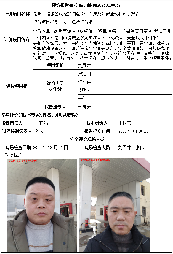 亳州市譙城區(qū)雙龍加油點(diǎn)(個(gè)人獨(dú)資)安全現(xiàn)狀評(píng)價(jià)報(bào)告