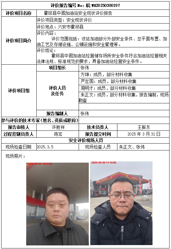 霍邱縣中固加油站安全現(xiàn)狀評價報告