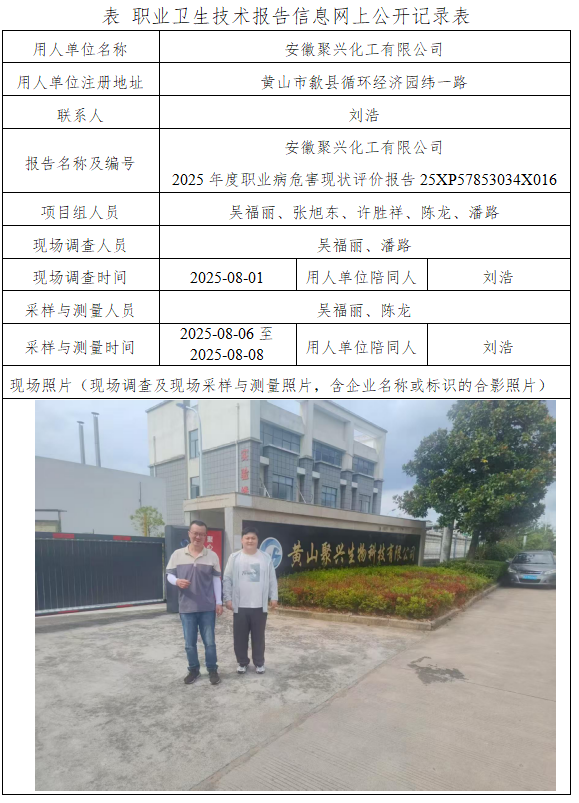 安徽聚興化工有限公司 2025年度職業(yè)病危害現(xiàn)狀評(píng)價(jià)報(bào)告