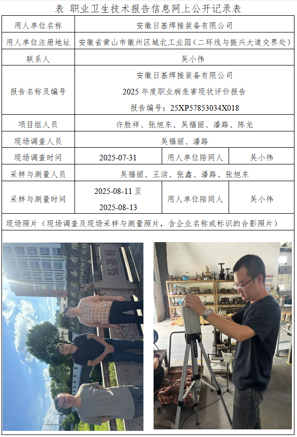 安徽日基焊接裝備有限公司 2025年度職業(yè)病危害現(xiàn)狀評價報告