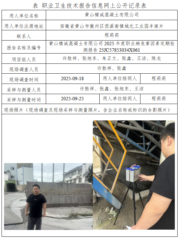黃山樓誠混凝土有限公司2025年度職業(yè)病危害因素定期檢測報告