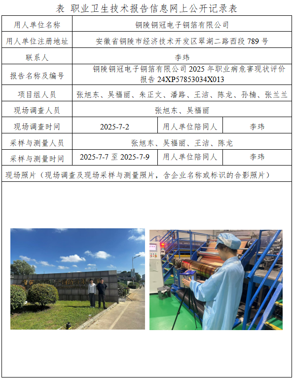 銅陵銅冠電子銅箔有限公司2025年職業(yè)病危害現(xiàn)狀評(píng)價(jià)報(bào)告