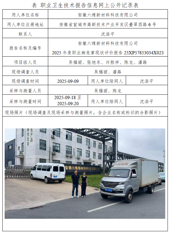 安徽六緣新材料科技有限公司 2025年度職業(yè)病危害現(xiàn)狀評(píng)價(jià)報(bào)告