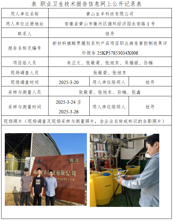 黃山生豐科技有限公司新材料植酸界膜劑系列產(chǎn)品項目職業(yè)病危害控制效果評價報告