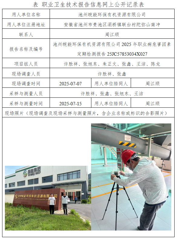 池州皖能環(huán)保有機資源有限公司2025年職業(yè)病危害因素定期檢測報告