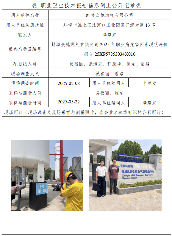 蚌埠眾德燃?xì)庥邢薰?025年職業(yè)病危害因素現(xiàn)狀評價(jià)報(bào)告