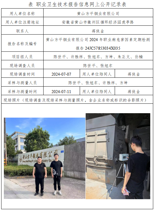 黃山方平銅業(yè)有限公司2024年職業(yè)病危害因素定期檢測(cè)報(bào)告