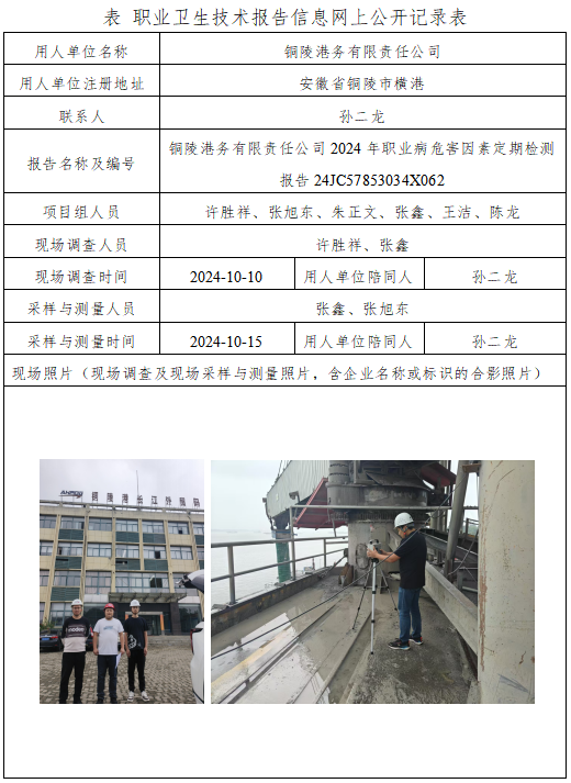 銅陵港務(wù)有限責(zé)任公司2024年職業(yè)病危害因素定期檢測報